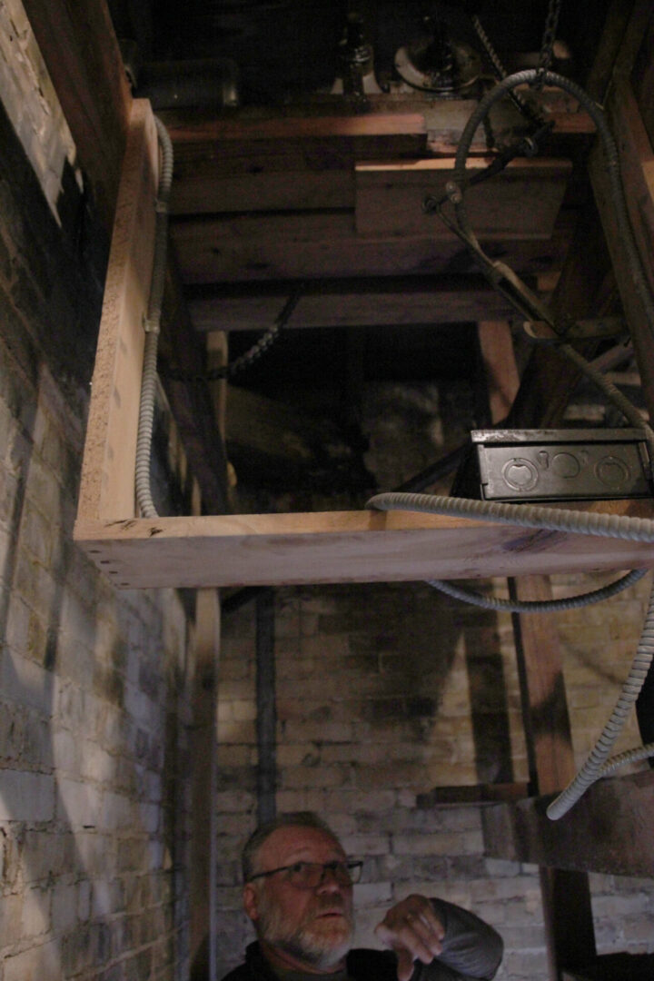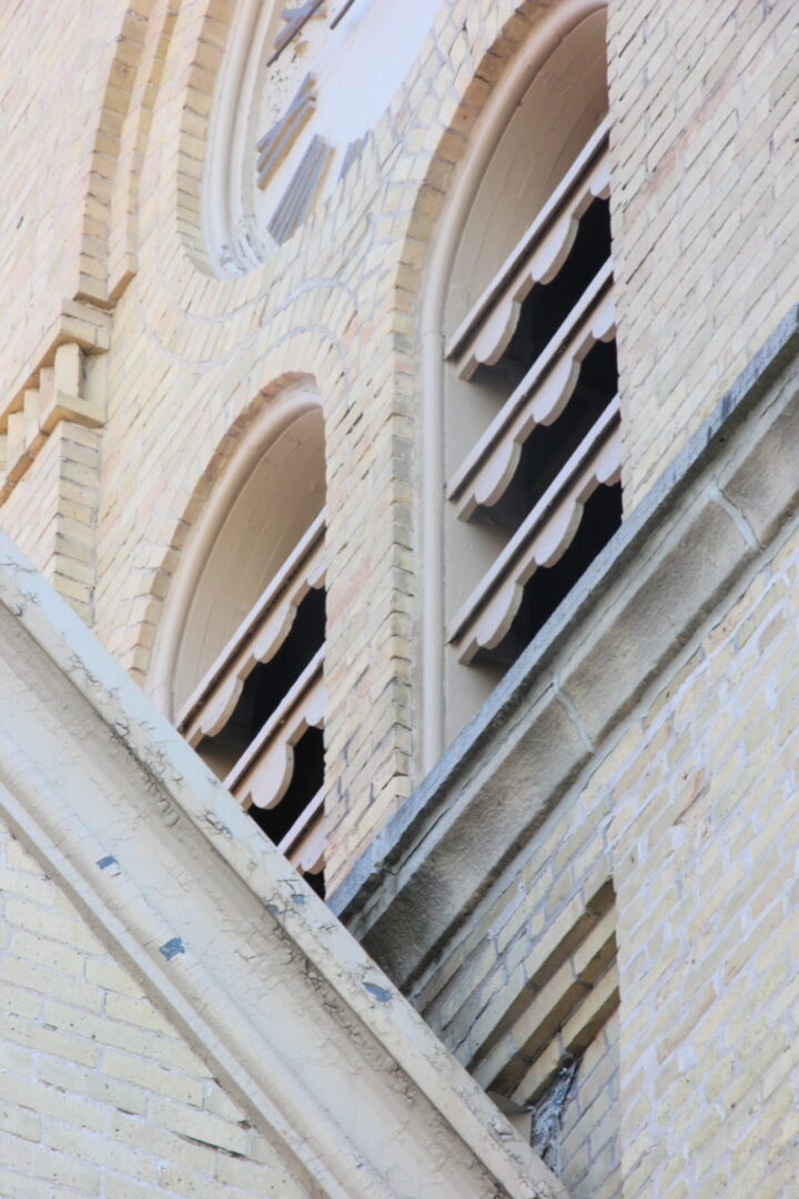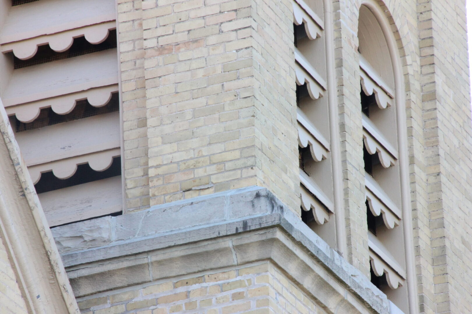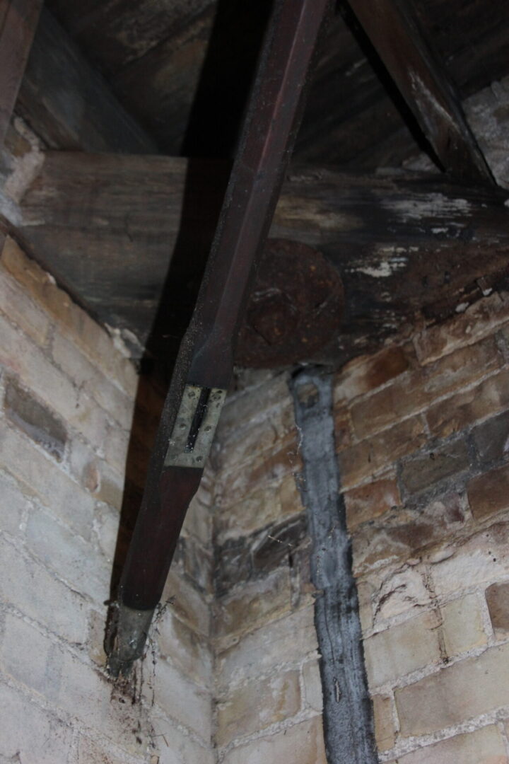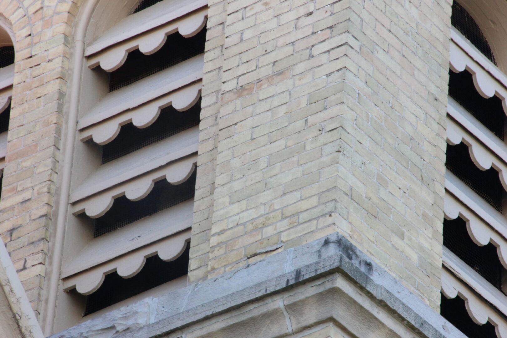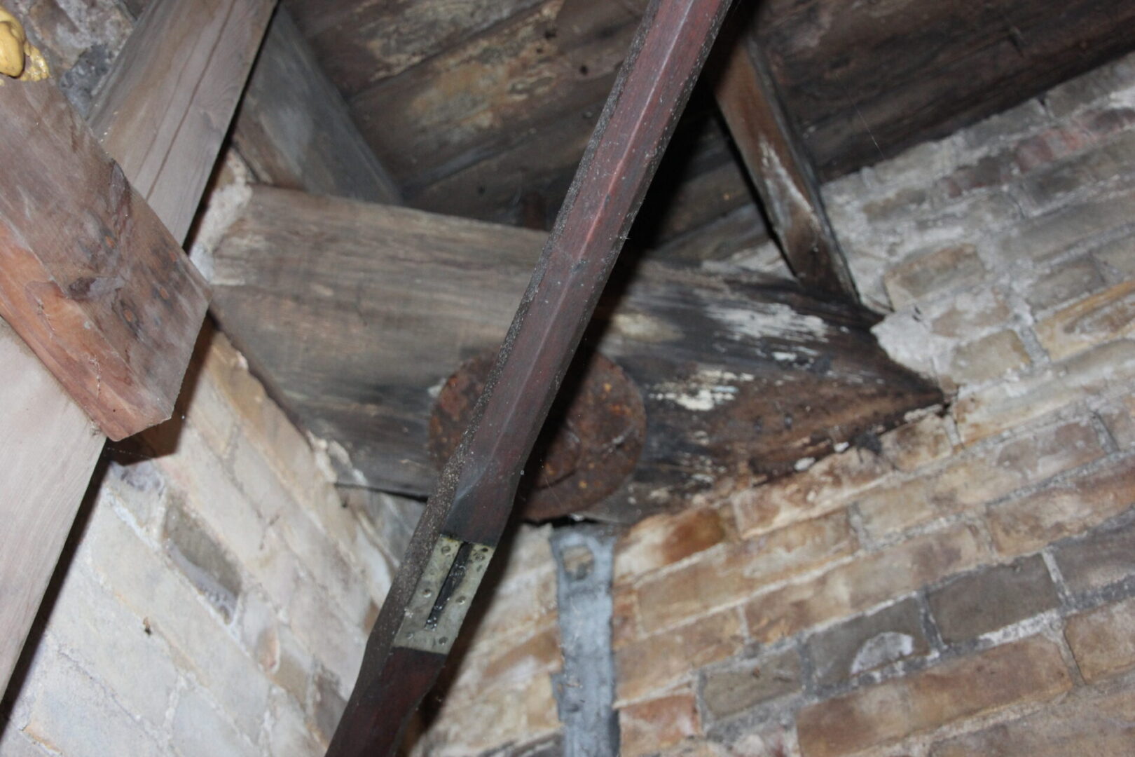 The bell tower has suffered from time and weather. Water damage has caused wood to rot; the structural beams need reinforcement. To protect the bells and the building that holds them, work will include:
